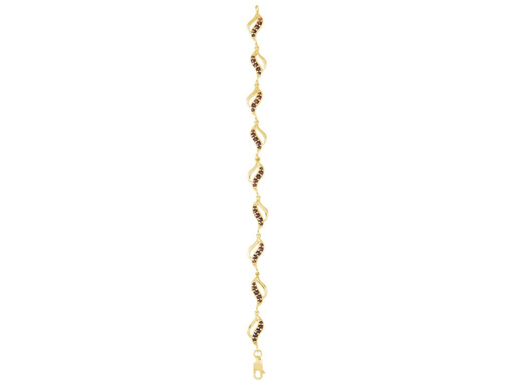 Silver bracelet with czech garnet, gold plated - wave