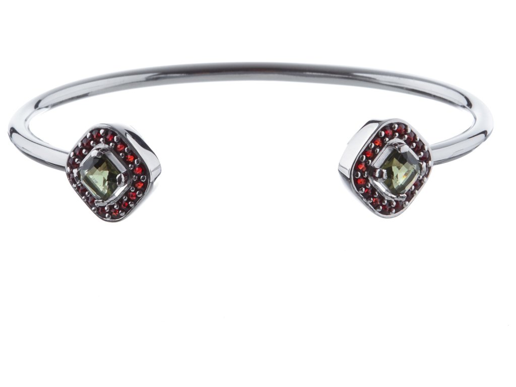 Silver bracelet with czech garnet and moldavite, rhodium plated - square