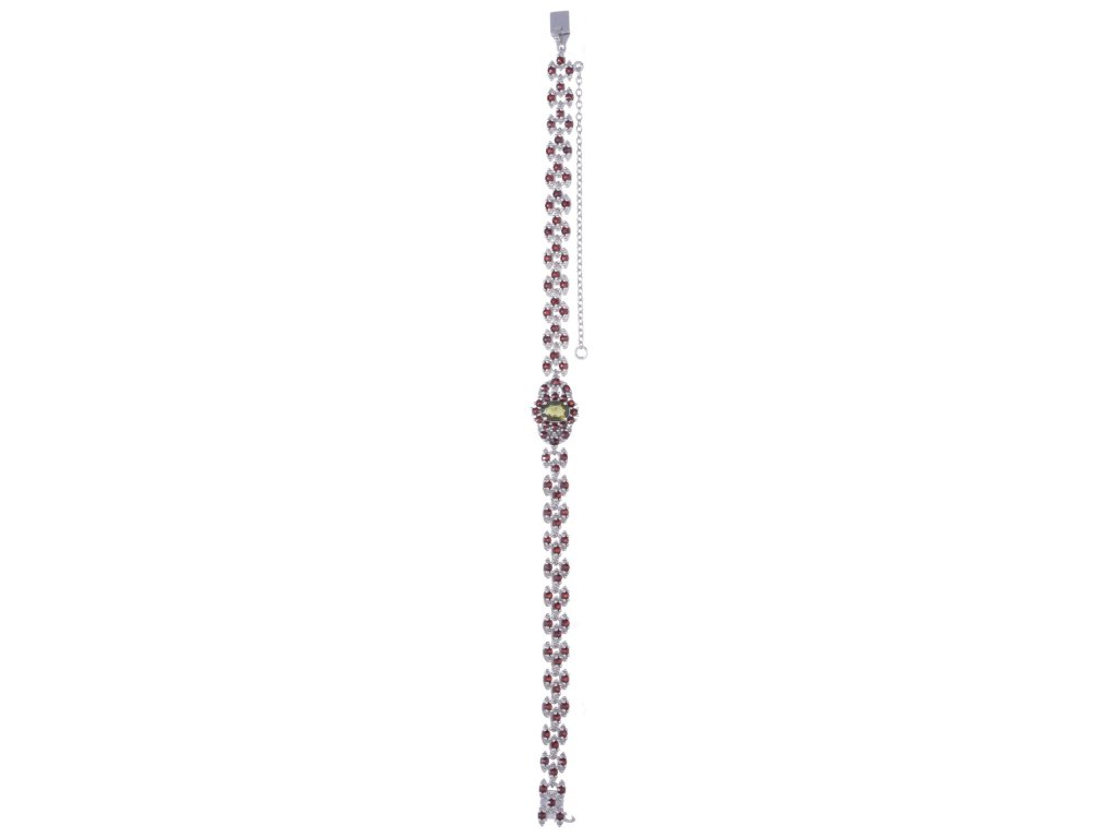 Silver bracelet with czech garnet and moldavite, rhodium plated - oval