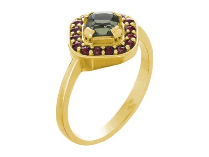 Silver bracelet with czech garnet and moldavite, gold plated - square