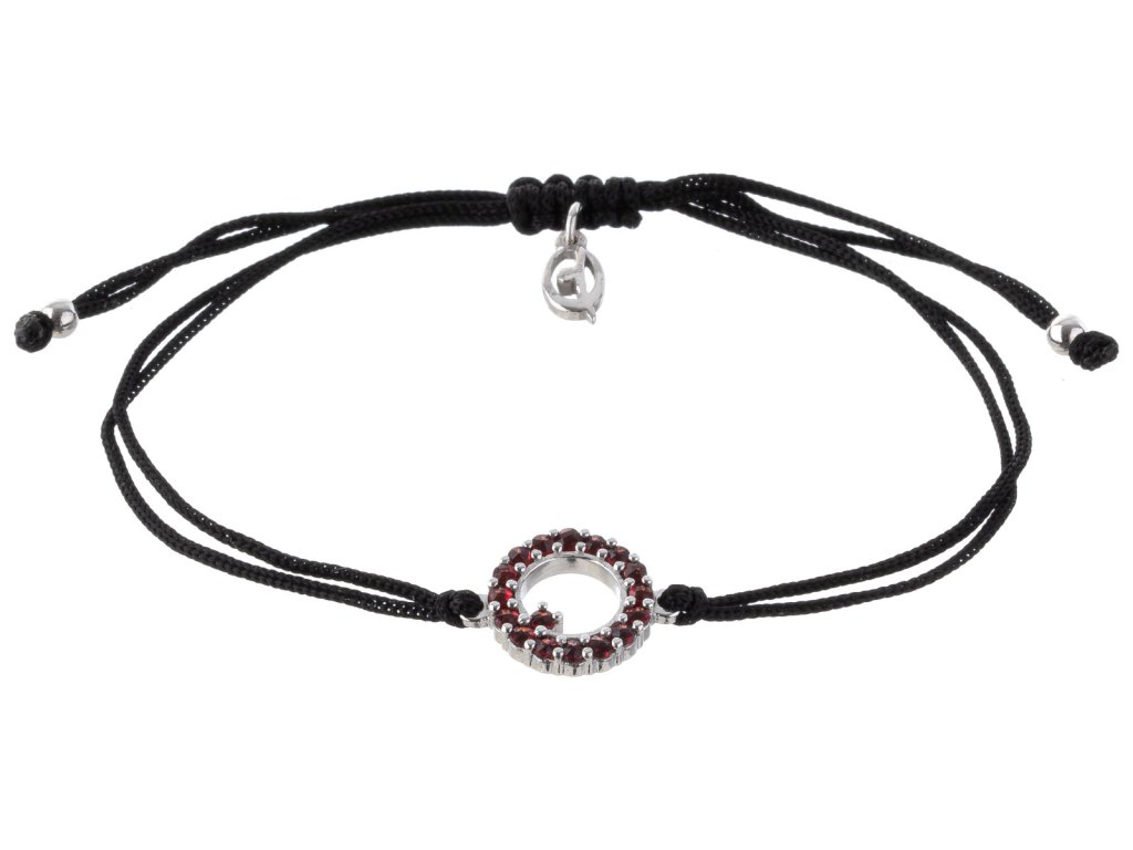 Silver bracelet Shamballa with czech garnet, rhodium plated - circle