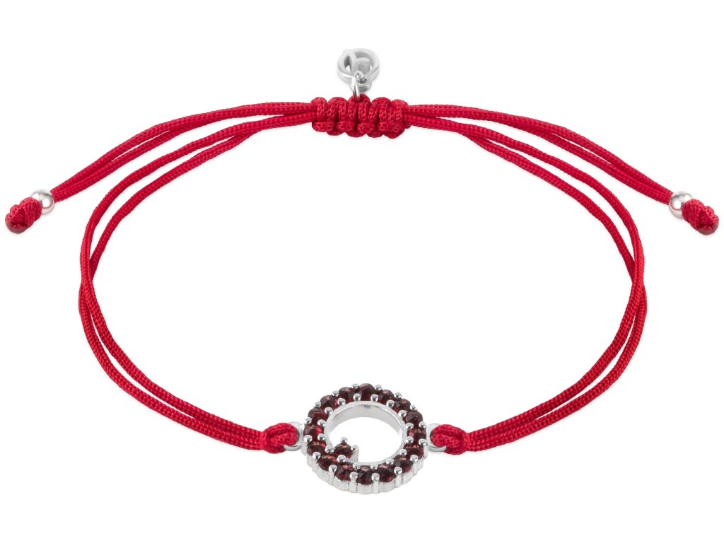 Silver bracelet Shamballa with czech garnet, rhodium plated - circle
