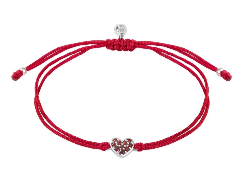 Silver bracelet Shamballa with czech garnet, rhodium plated - heart