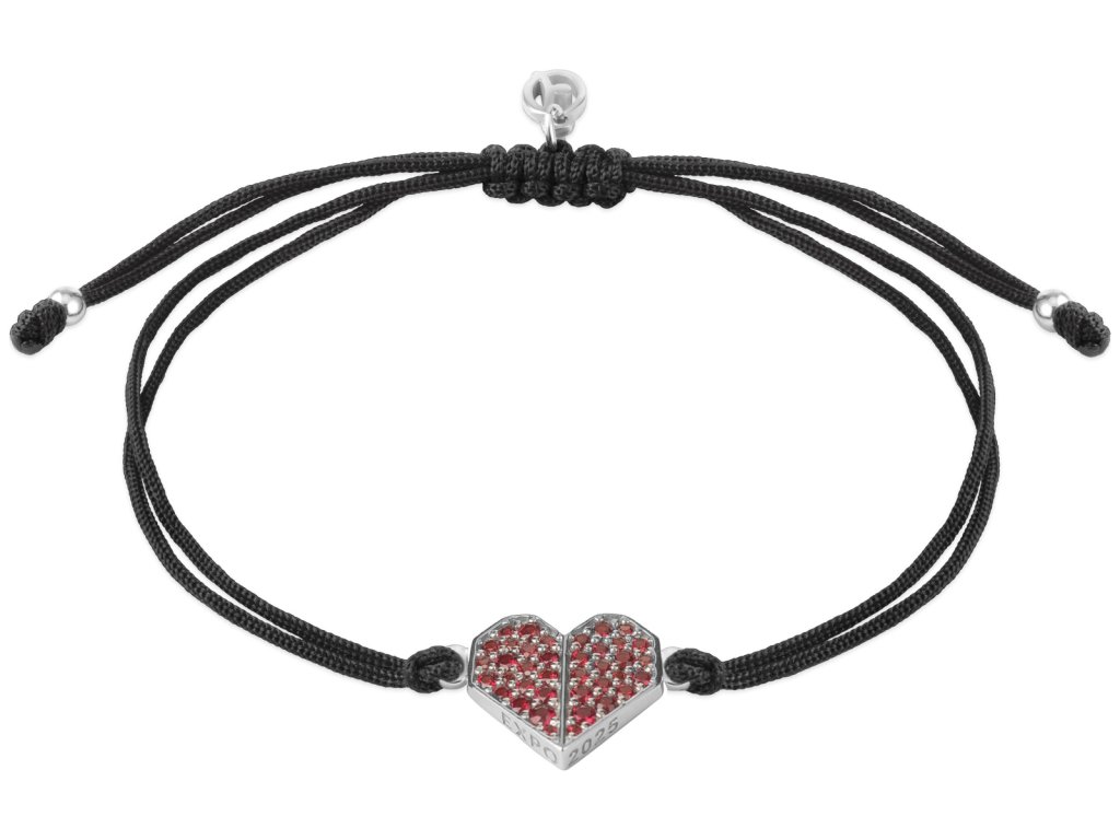 Shamballa EXPO 2025 - silver bracelet with czech garnet, rhodium plated - heart