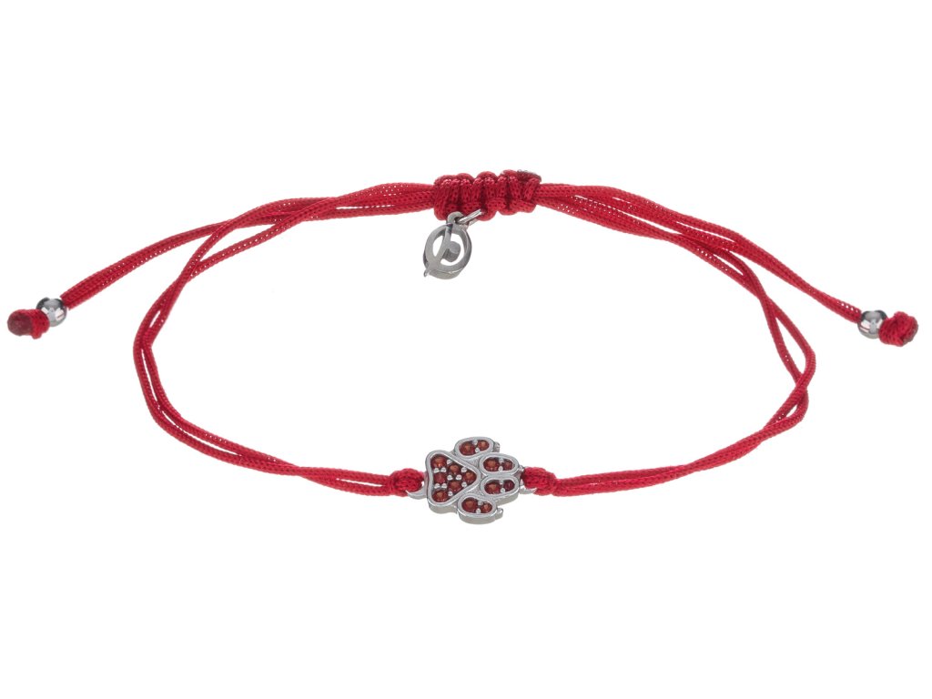 Silver bracelet Shamballa with czech garnet, rhodium plated - paw