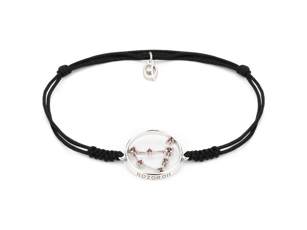 Stříbrný náramek Shamballa s českým granátem, rhodiovaný - zvěrokruh, kozoroh