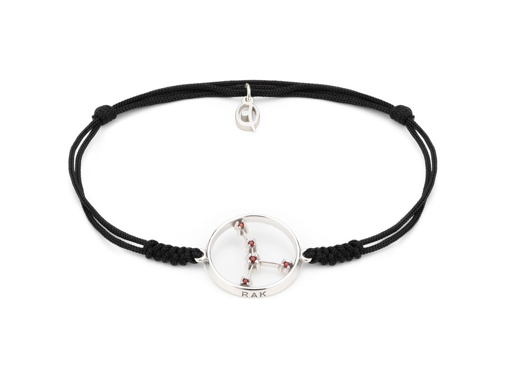 Silver bracelet Shamballa with czech garnet, rhodium plated, zodiac sign - cancer