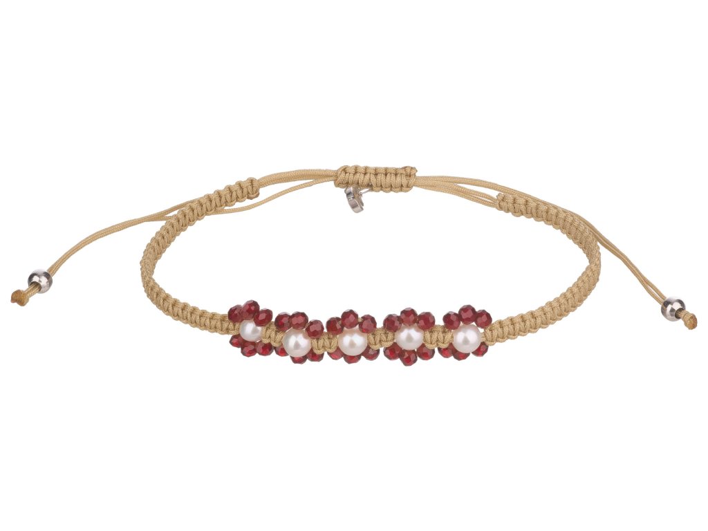 Stříbrný náramek Shamballa s českým granátem a perlou, rhodiovaný
