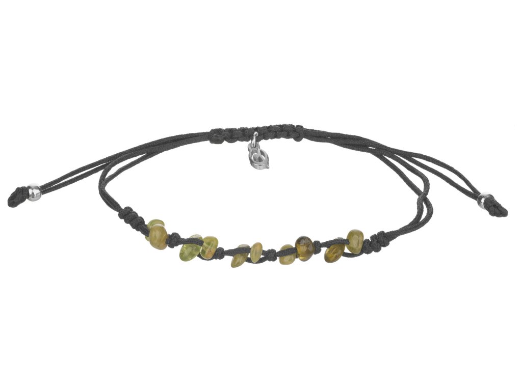 Stříbrný náramek Shamballa s peridotem, rhodiovaný