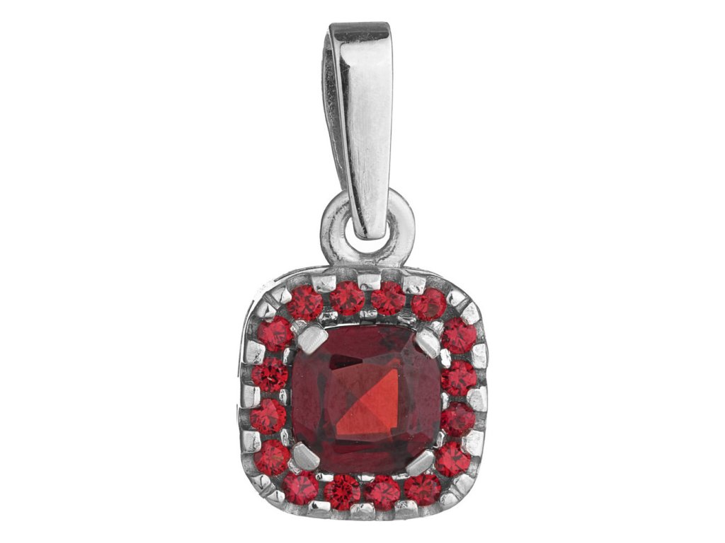 Stříbrný přívěsek s českým granátem, rhodiovaný - čtverec