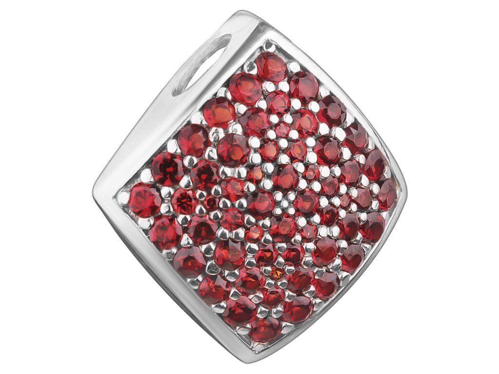 Tento stylový přívěsek je vyroben ze stříbra (Ag 925/1000) a zušlechtěn rhodiováním. Je zdoben českým granátem. Přívěsek má motiv čtverec o velikosti 14x14 mm.