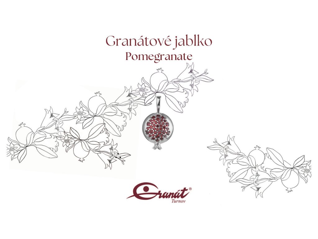 Tento stylový přívěsek je vyroben ze stříbra (Ag 925/1000) a zušlechtěn rhodiováním. Je zdoben českým granátem. Přívěsek má motiv jablko o velikosti 12x12 mm. Přívěsek je dodáván na papírové kartičce.