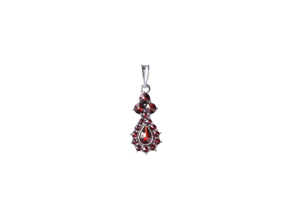 Stříbrný přívěsek s českým granátem, rhodiovaný - kapka