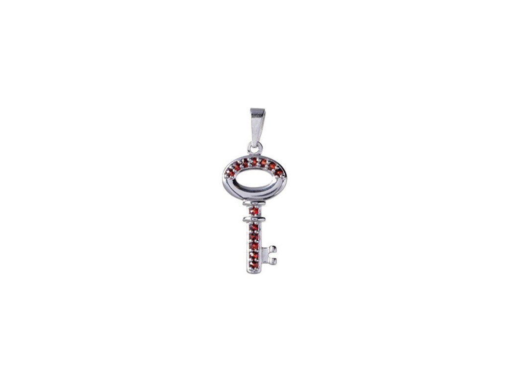 Tento stylový přívěsek je vyroben ze stříbra (Ag 925/1000) a zušlechtěn rhodiováním. Je zdoben českým granátem. Přívěsek má motiv klíč o velikosti 21x11 mm.
