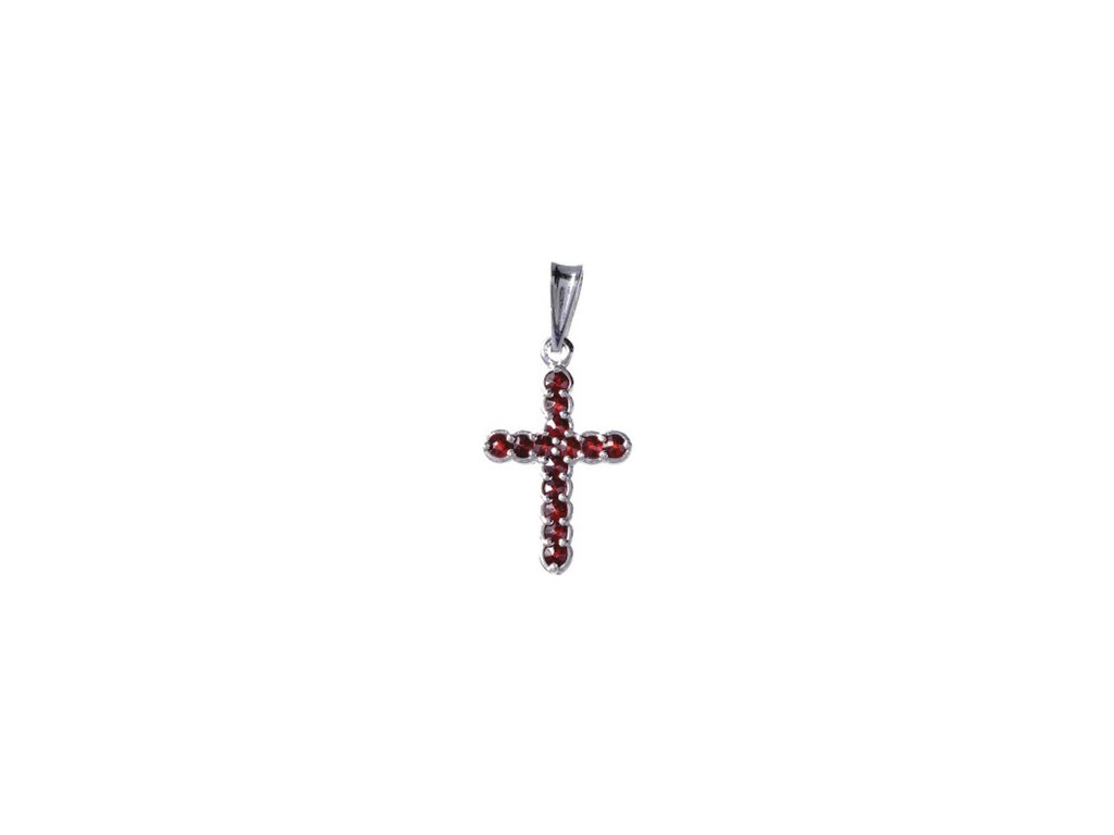 Silver pendant with czech garnet, rhodium plated - cross