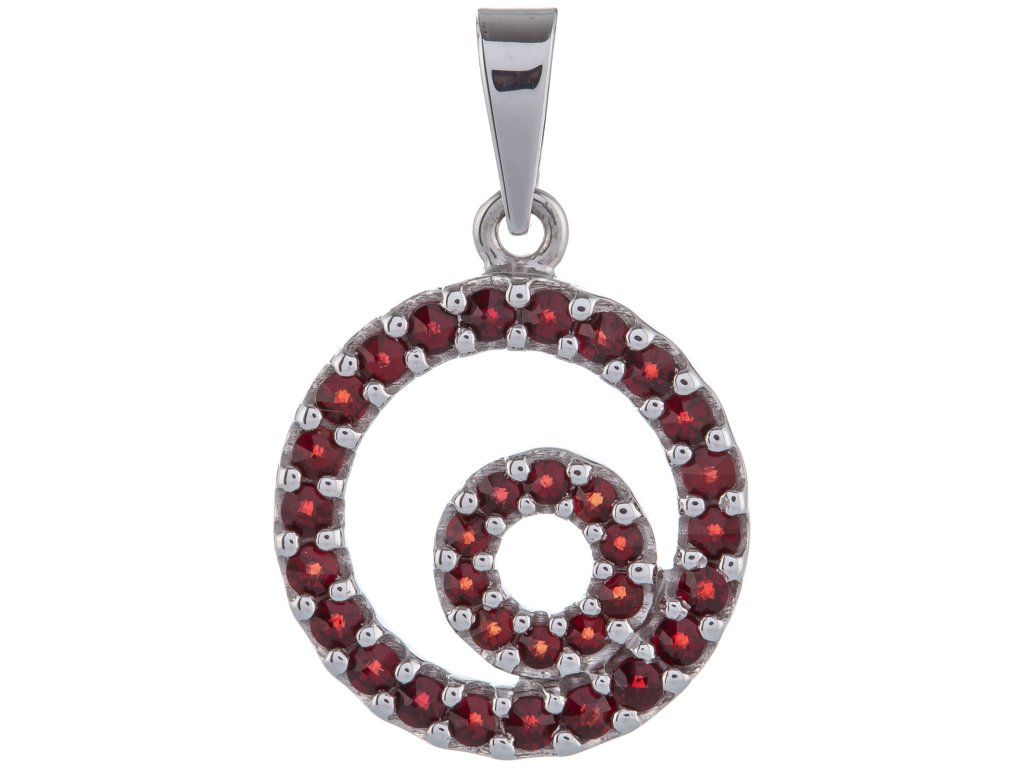 Silver pendant with czech garnet, rhodium plated - circle
