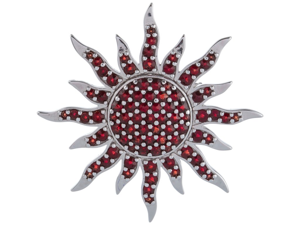 Stříbrný přívěsek s českým granátem, rhodiovaný - slunce