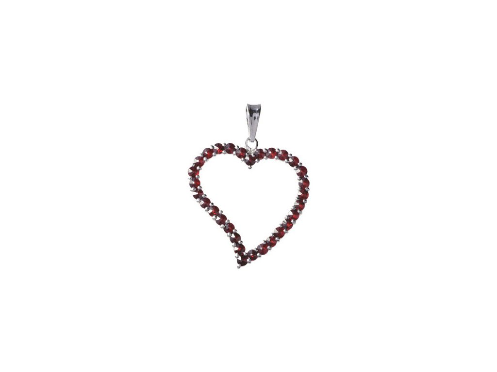 Tento stylový přívěsek je vyroben ze stříbra (Ag 925/1000) a zušlechtěn rhodiováním. Je zdoben českým granátem. Přívěsek má motiv srdce o velikosti 22x22 mm.
