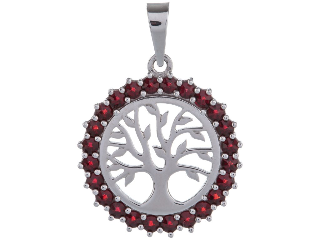 Silver pendant with czech garnet, rhodium plated - tree of life
