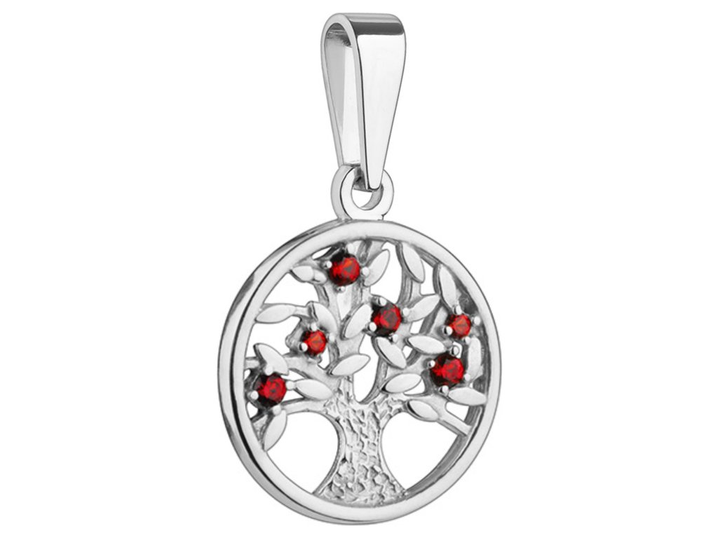 Stříbrný přívěsek s českým granátem, rhodiovaný - strom života
