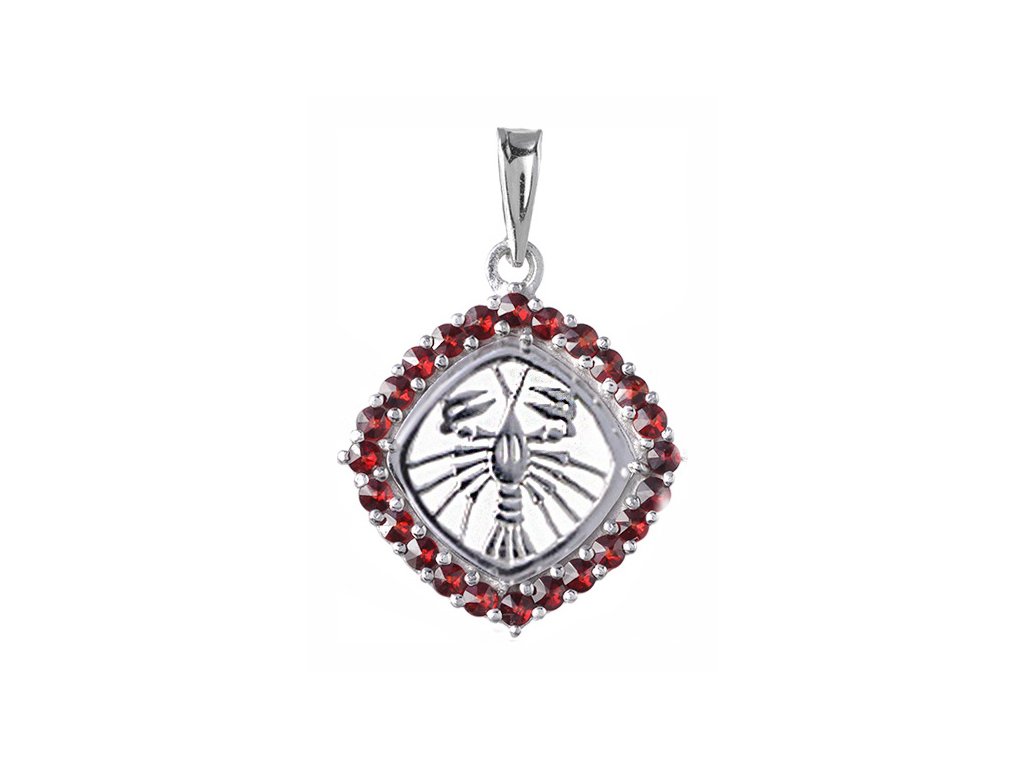 Silver pendant with czech garnet, rhodium plated, zodiac sign - cancer