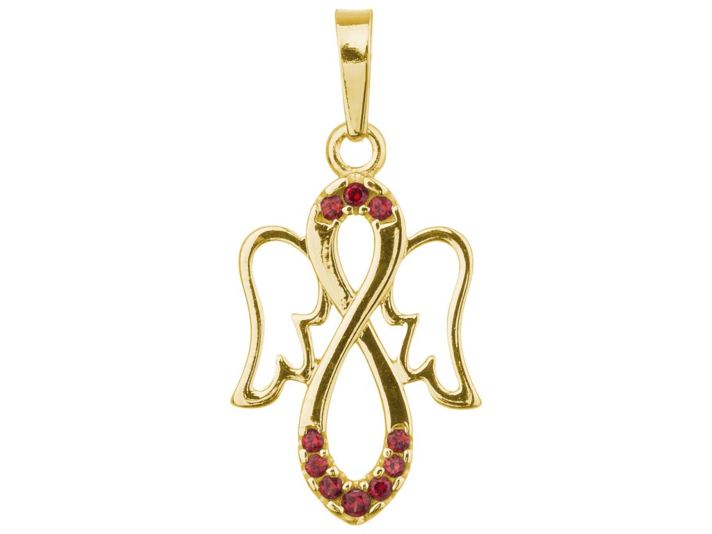Silver pendant with czech garnet, gold plated - angel