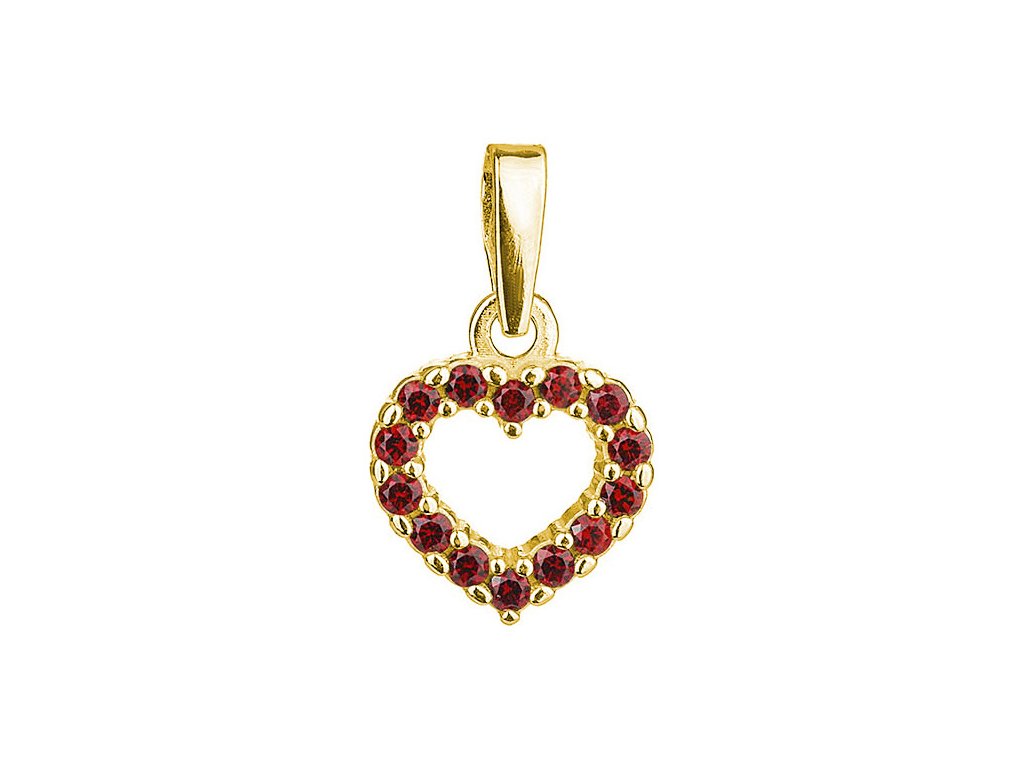 Silver pendant with czech garnet, gold plated - heart
