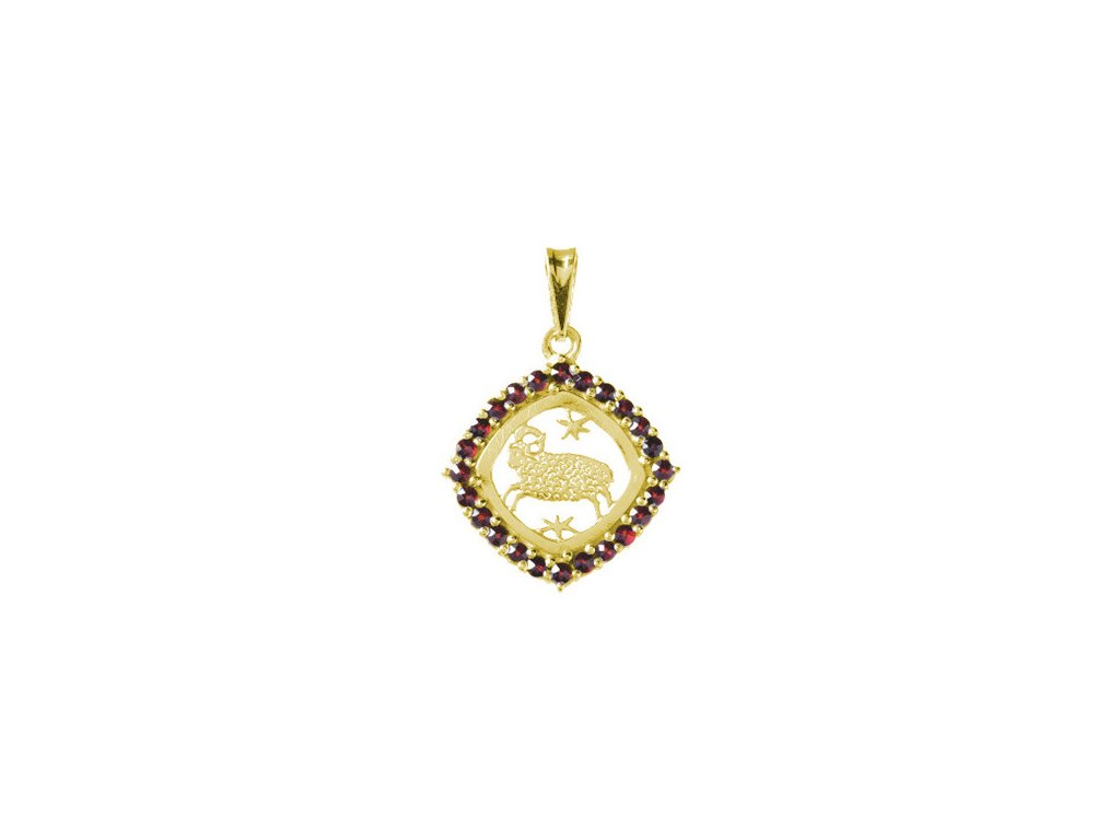 Stříbrný přívěsek s českým granátem, zlacený - zvěrokruh, beran