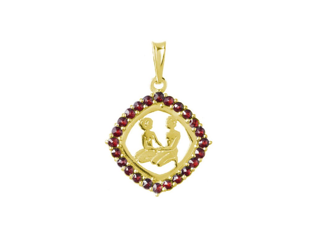 Stříbrný přívěsek s českým granátem, zlacený - zvěrokruh, panna