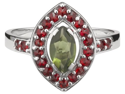 Silver pendant with czech garnet and moldavite, rhodium plated - tip