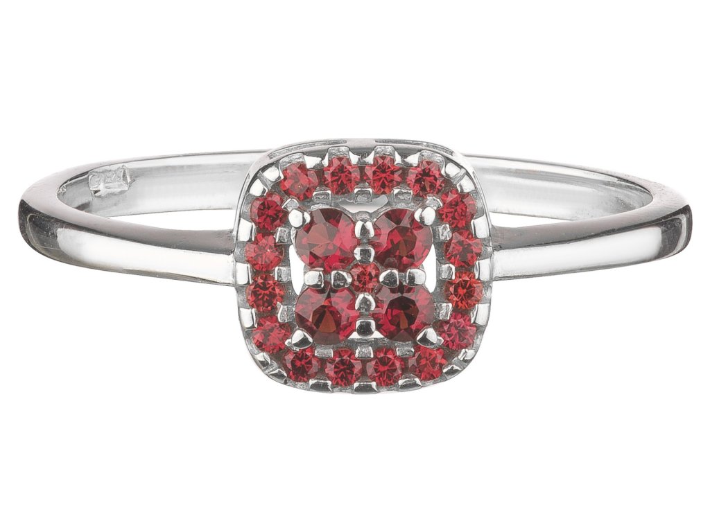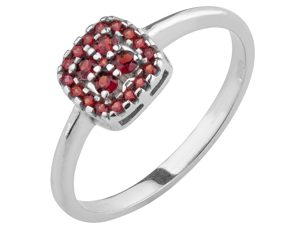 Tento stylový prsten je vyroben ze stříbra (Ag 925/1000) a zušlechtěn rhodiováním. Je zdoben českým granátem. Prsten má motiv čtverec o velikosti 8x8 mm.