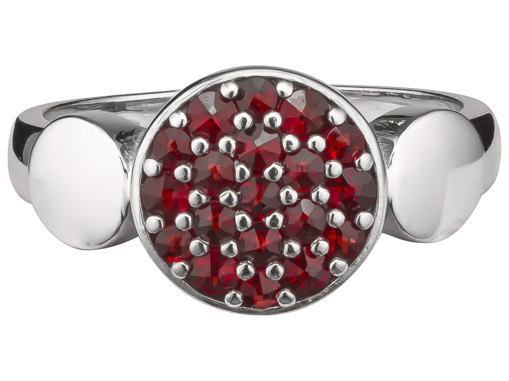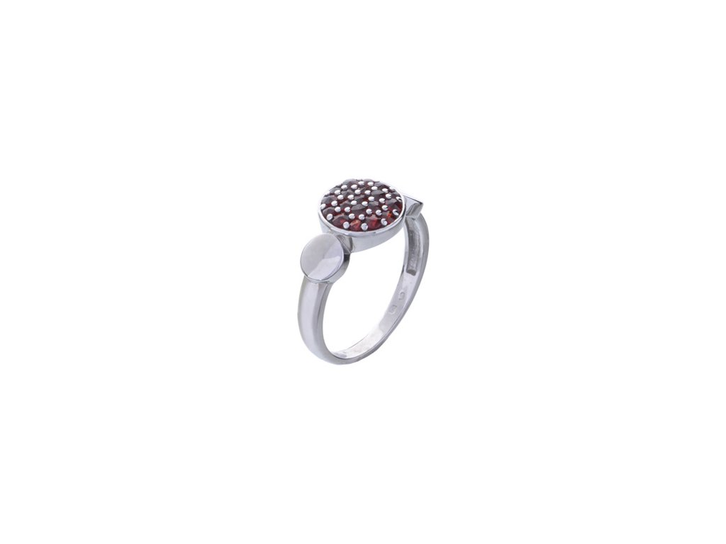 Silver ring with czech garnet, rhodium plated - circle