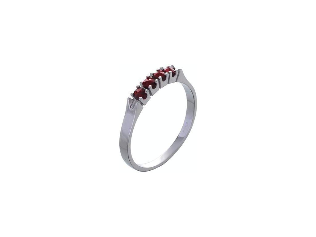 Stříbrný prsten s českým granátem, rhodiovaný - linka