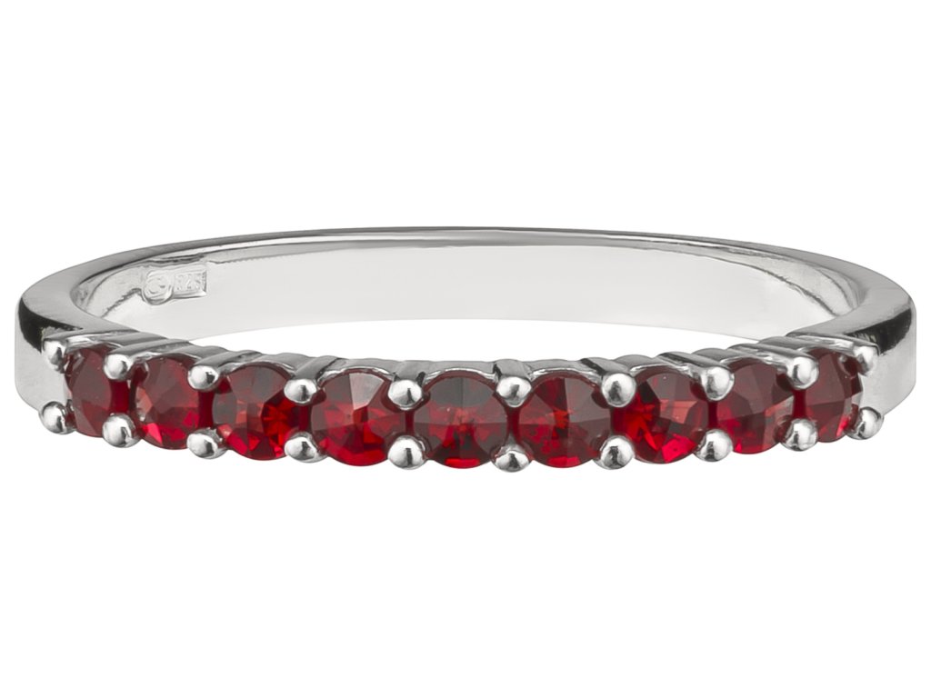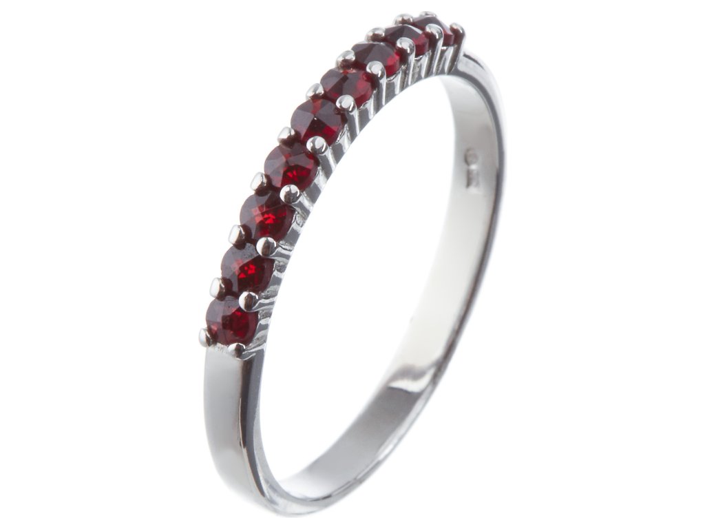 Stříbrný prsten s českým granátem, rhodiovaný - linka