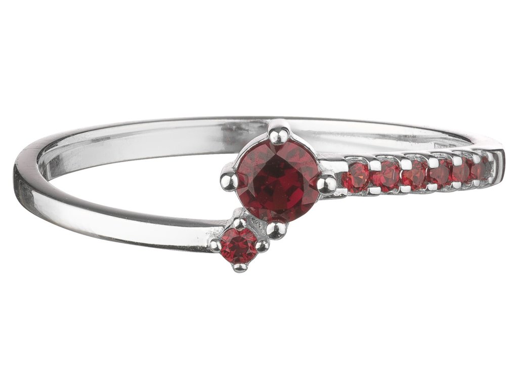Stříbrný prsten s českým granátem, rhodiovaný - linka