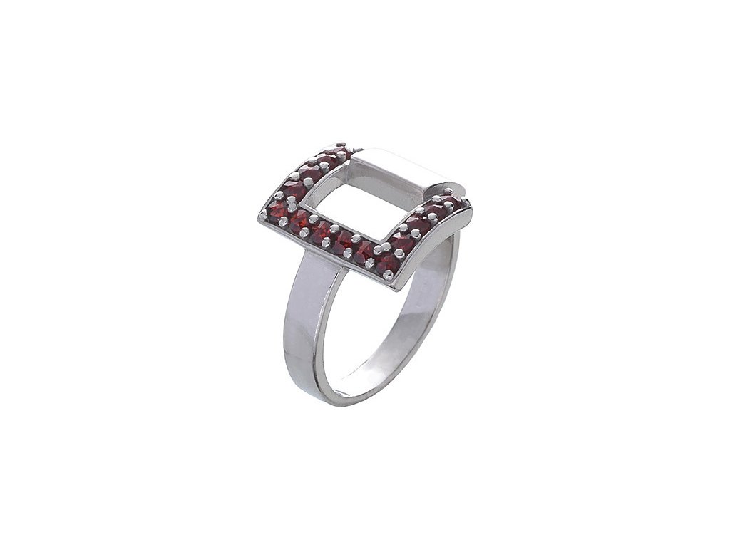 Tento stylový prsten je vyroben ze stříbra (Ag 925/1000) a zušlechtěn rhodiováním. Je zdoben českým granátem. Prsten má motiv obdélník o velikosti 13x14 mm.