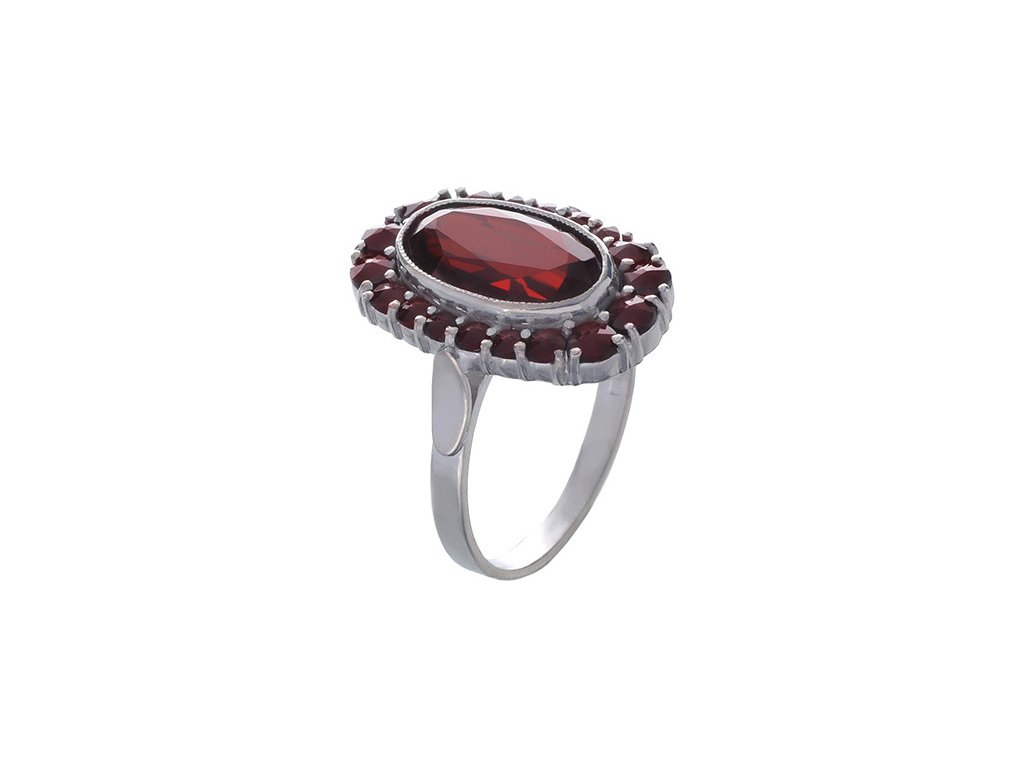 Stříbrný prsten s českým granátem, rhodiovaný - ovál