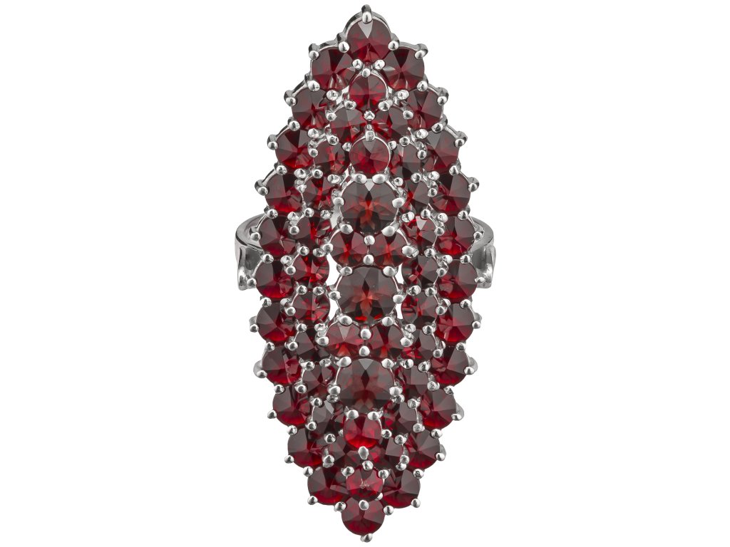 Silver ring with czech garnet, rhodium plated - oval