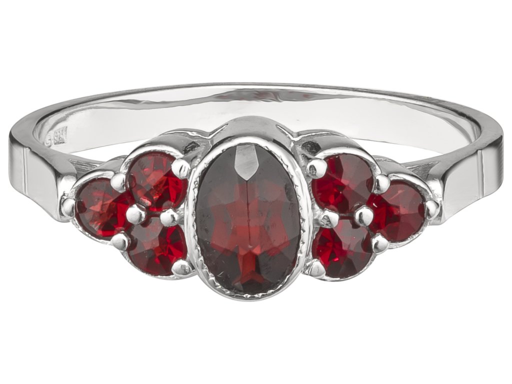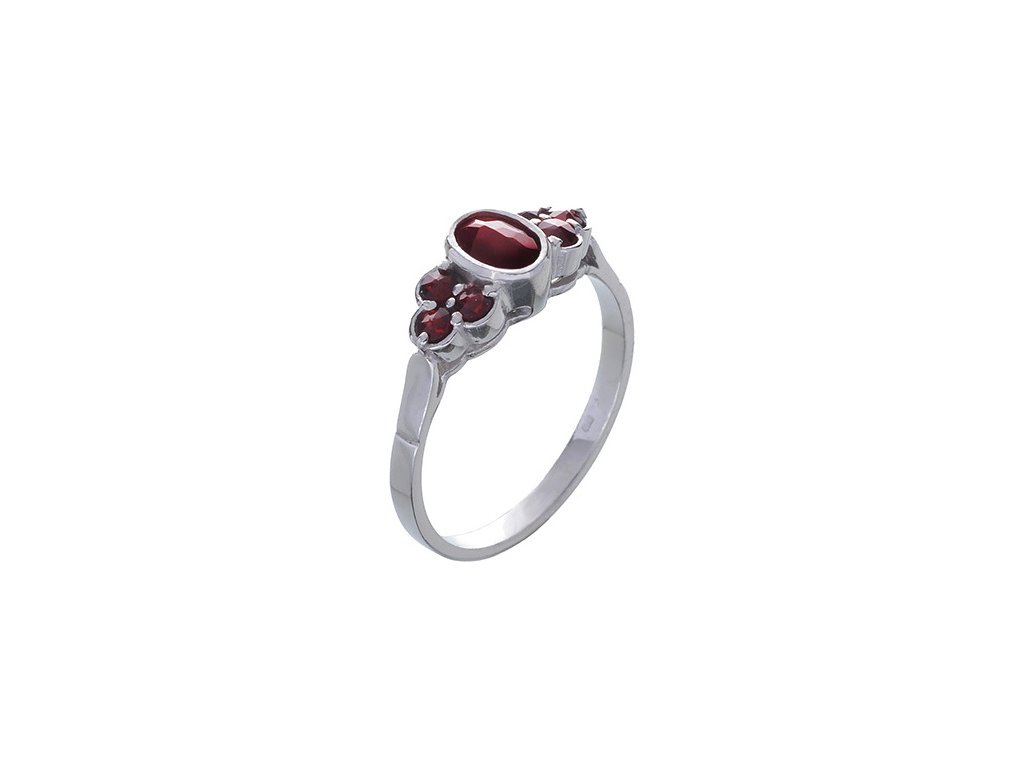 Silver ring with czech garnet, rhodium plated - oval
