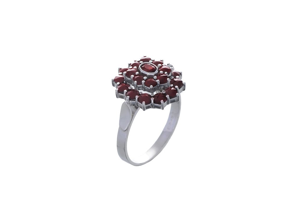 Silver ring with czech garnet, rhodium plated - oval