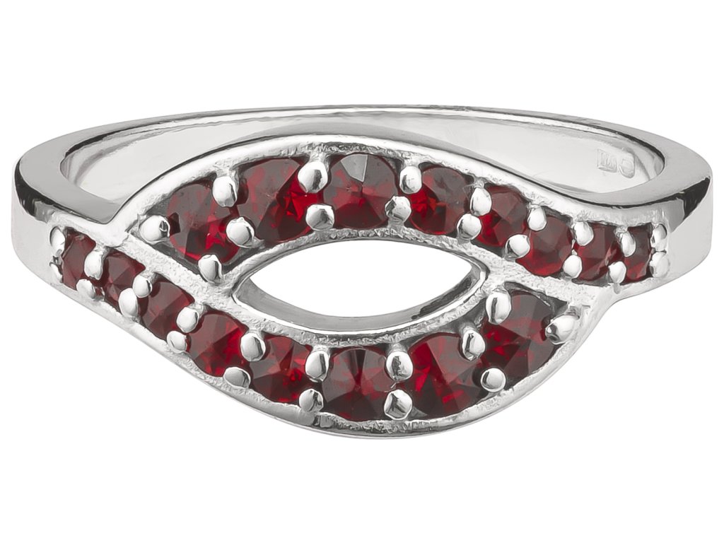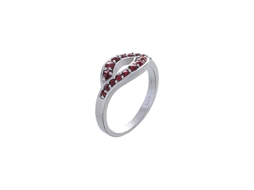 Stříbrný prsten s českým granátem, rhodiovaný - vlnka