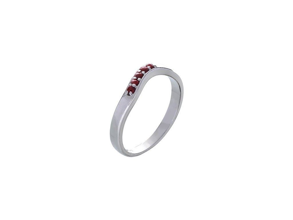 Stříbrný prsten s českým granátem, rhodiovaný - vlnka