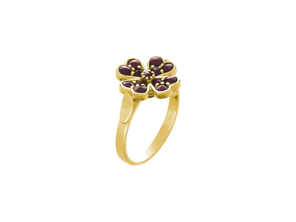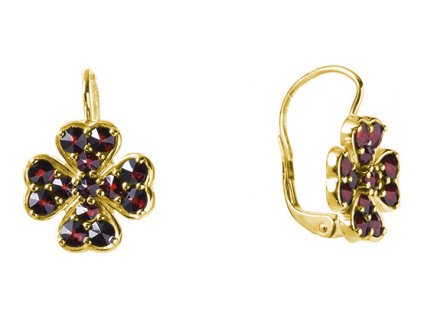 Silver ring with czech garnet, gold plated - four-leaf clover