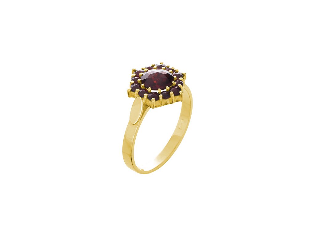Silver ring with czech garnet, gold plated - flower