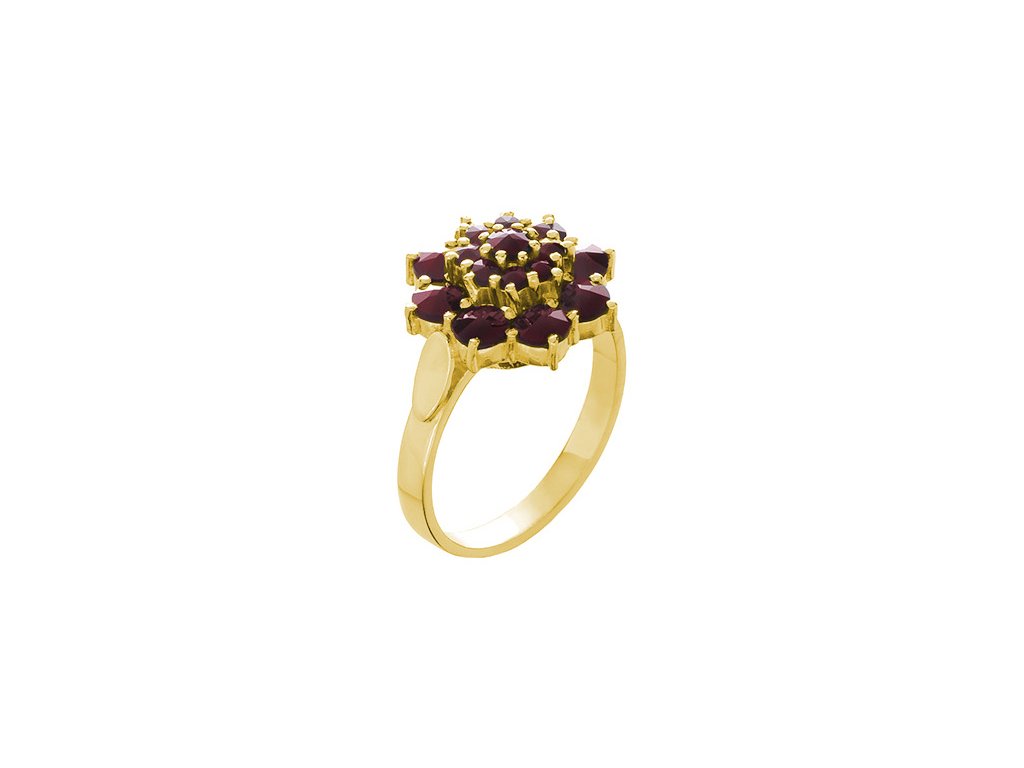 Silver ring with czech garnet, gold plated - flower