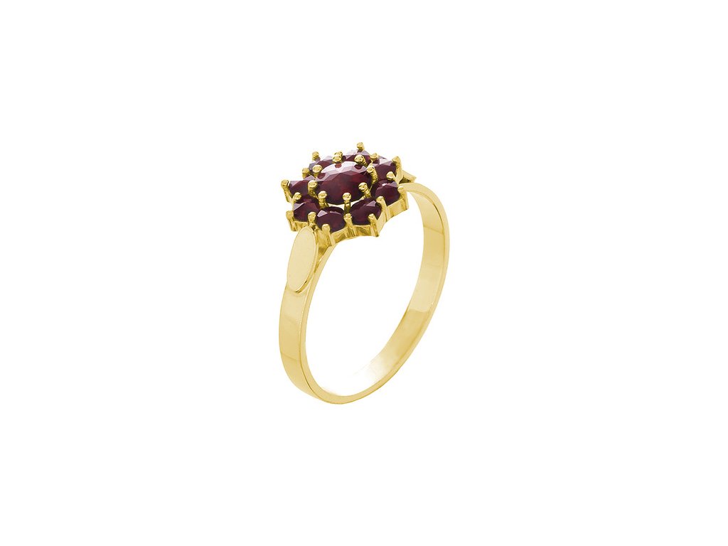 Silver ring with czech garnet, gold plated - flower