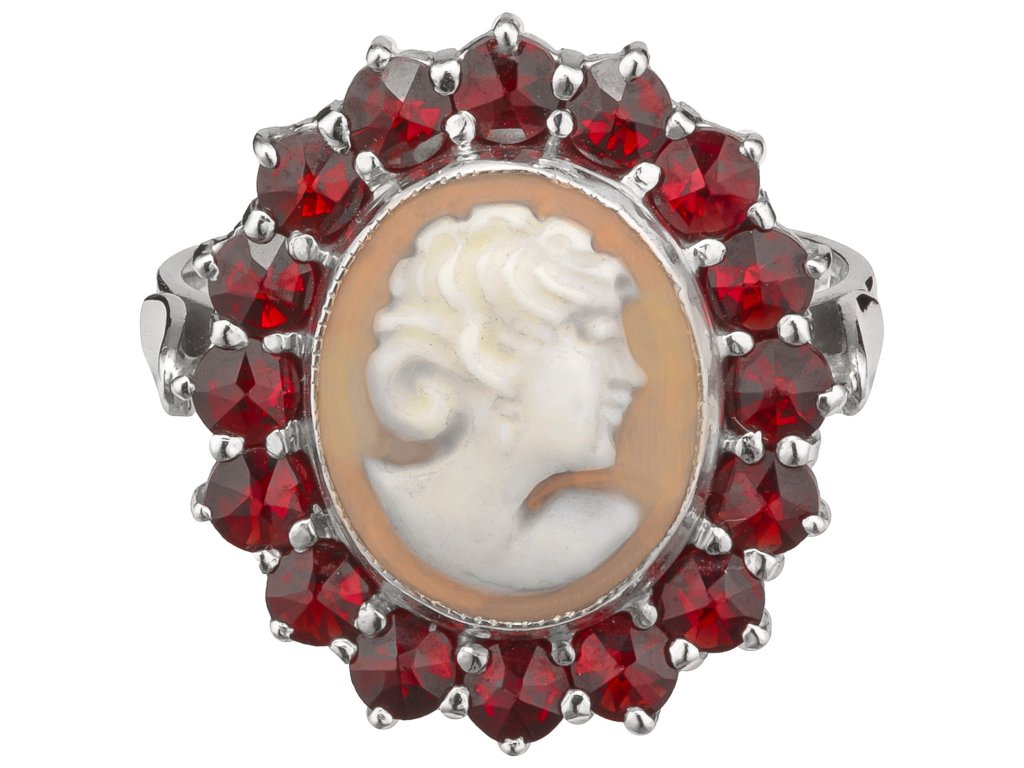 Silver ring with czech garnet and cameo, rhodium plated - oval