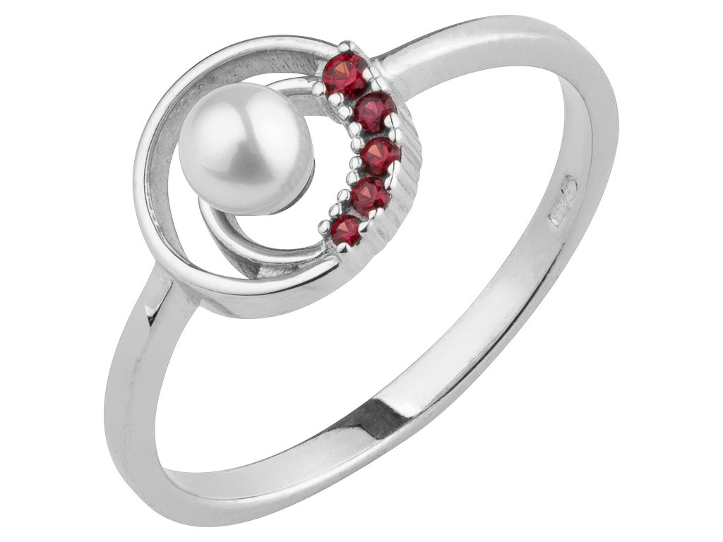 Stříbrný prsten s českým granátem a perlou, rhodiovaný - kruh