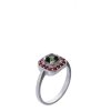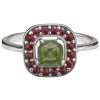 Silver ring with czech garnet and moldavite, rhodium plated - square