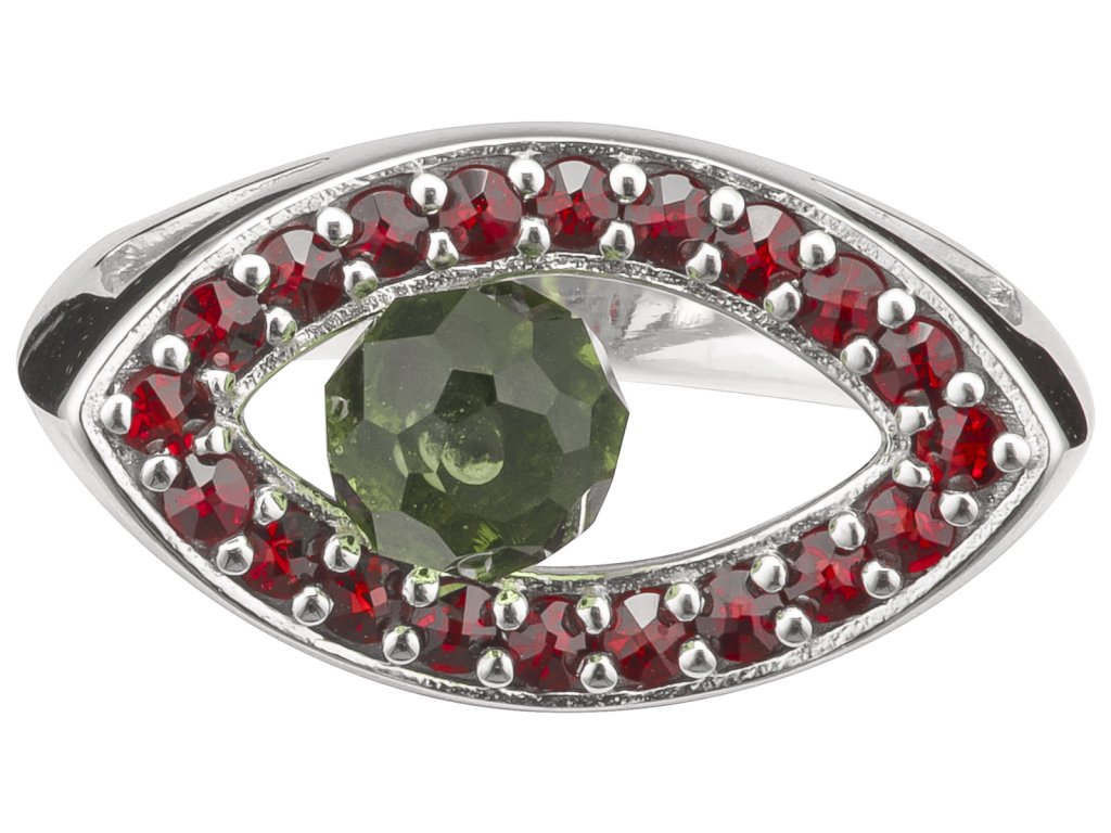 Stříbrný prsten s českým granátem a vltavínem, rhodiovaný - špička